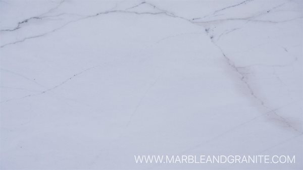 Calacatta Caldia from Italy features a mostly white background with a soft grey vein and can often have a green hue to the veining.