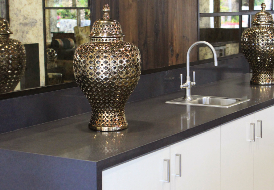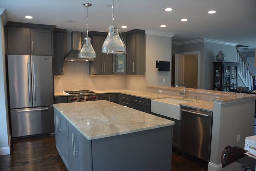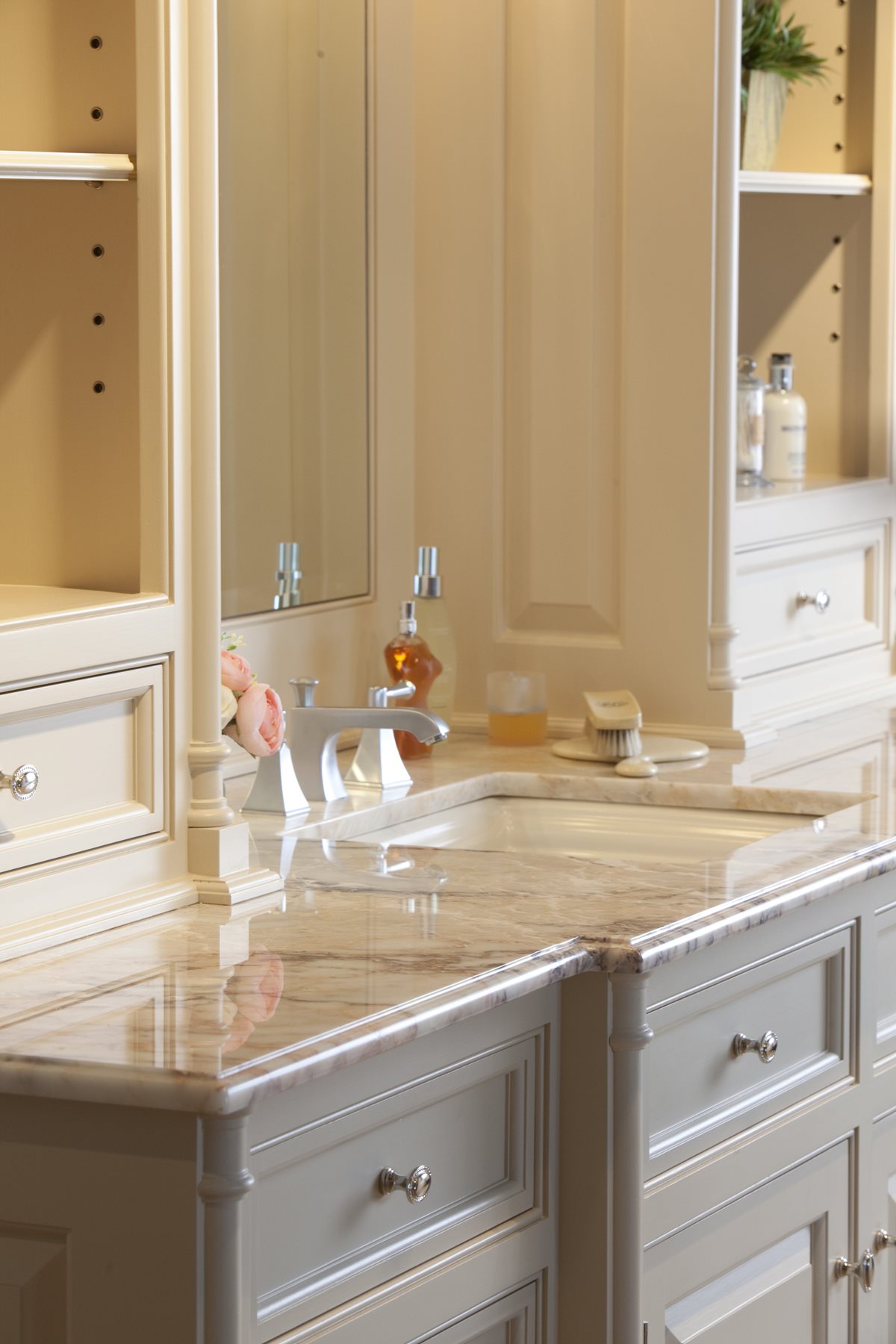 Estatuario backsplash bookmatched counters are frost white ColorQuartz