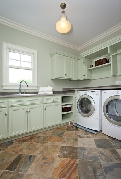 Hardworking slate floors in a utility room by Oakley Home Builders.