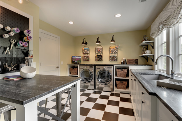 The laundry room has a tough job. It’s a workhorse much like the kitchen and the bathroom, but it’s typically not shown very much love when it comes to design. Bathrooms and kitchens typically tend to get all of the attention, and by attention we mean beautiful tile and stonework. However, as today’s laundry rooms evolve into multi-purpose spaces that are seeing more use, they are proving they are just as deserving of a little design T.L. C. as the other spaces.