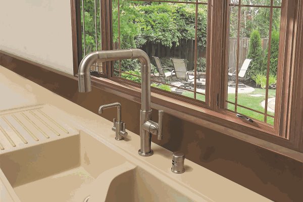 Whether the setting is an urban loft, a country villa, or anything in between, the rustic/industrial look is a hot trend right now. With the rustic/industrial look as their signature style, Sonoma Forge offers Made in America kitchen and bath faucets with the look of hand-forged metal. The Brut series is reminiscent of raw plumbing parts. The tall tap with elbow spout makes a strong design statement, and the pull-down spout offers the sink area functionality that’s required.